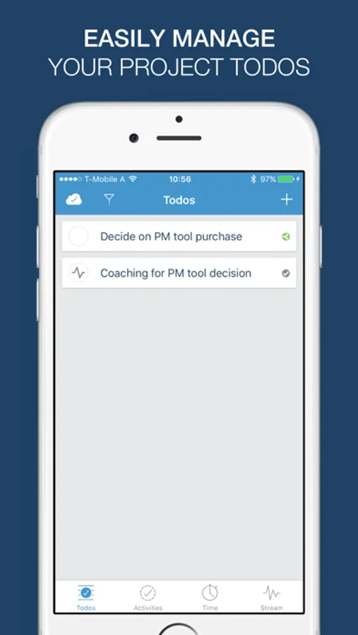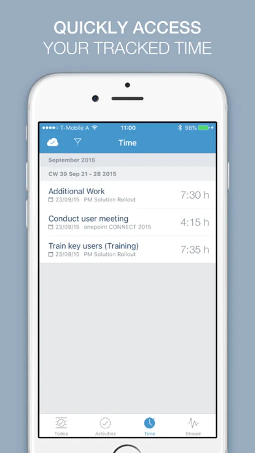 FILTER your todos, activities, times and streams by PROJECTS, add COMMENTS to your activities and enjoy onepoint ME’s mobile optimized design at any time.