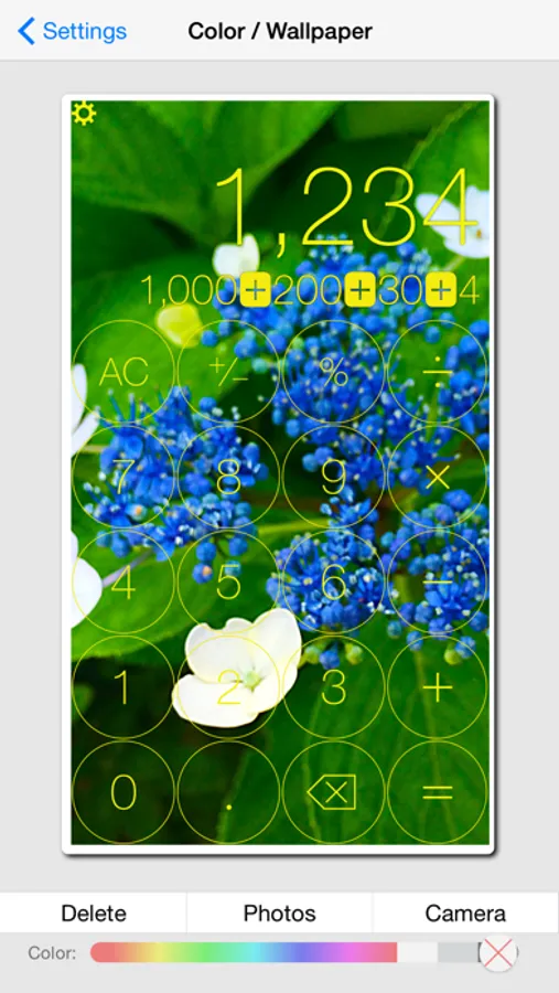 - Color or Wallpaper : Set the wallpaper with a photograph or a camera, or select a background color