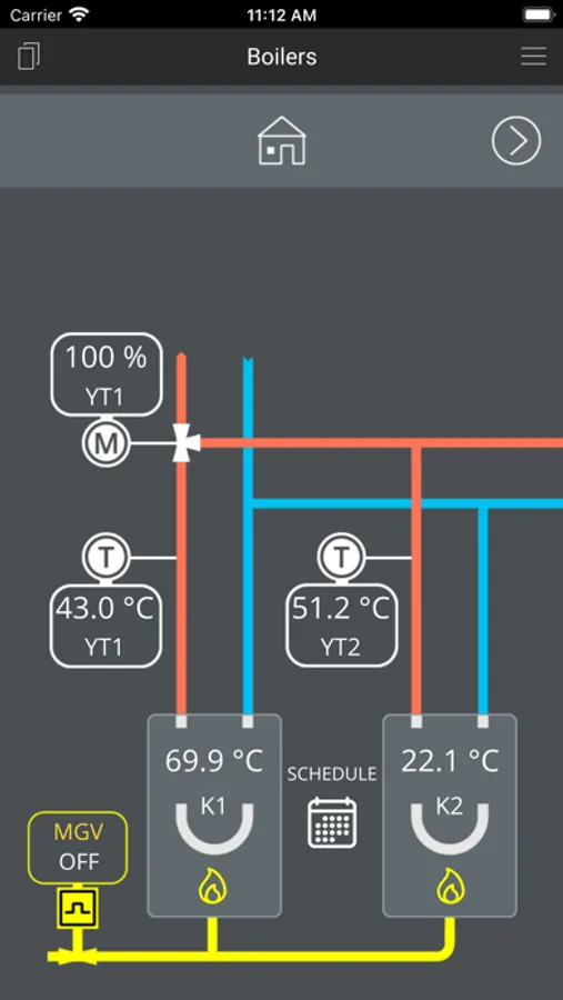 With Domat Visual, the control panel of your controller is always at your fingertips. The controllers must be programmed and commissioned, and must be accessible over the Internet or in your local network.