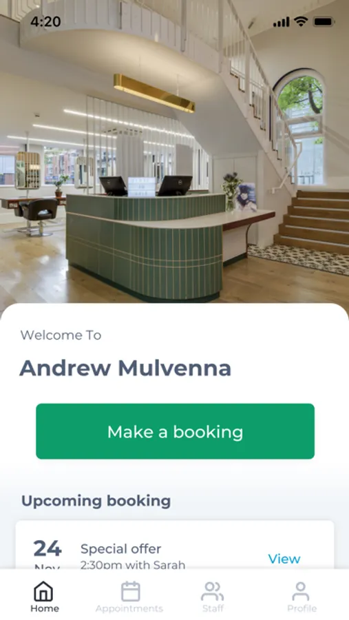 The Andrew Mulvenna app makes booking your appointments and managing your loyalty points even easier. You're just a few taps away from feeling good and looking great!