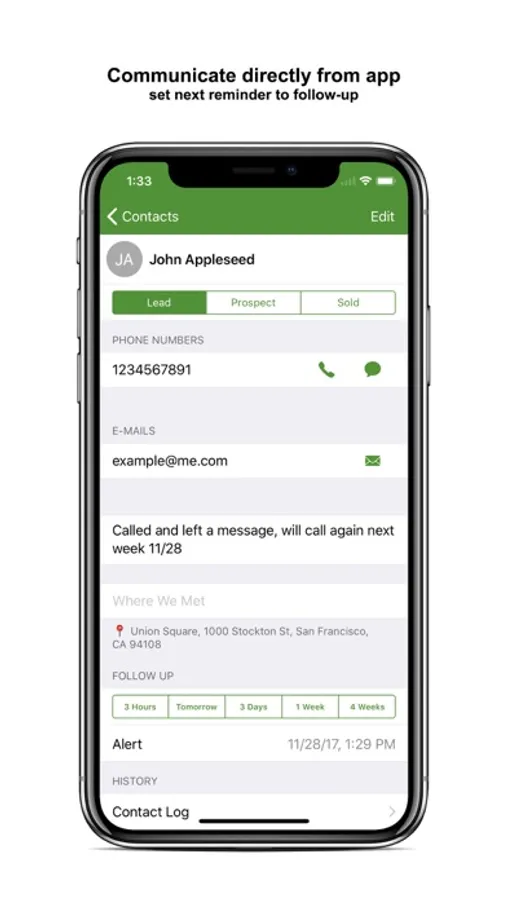 Set custom contact reminders to follow-up. Receive alerts on iPhone and Apple Watch.