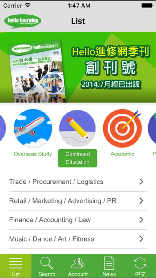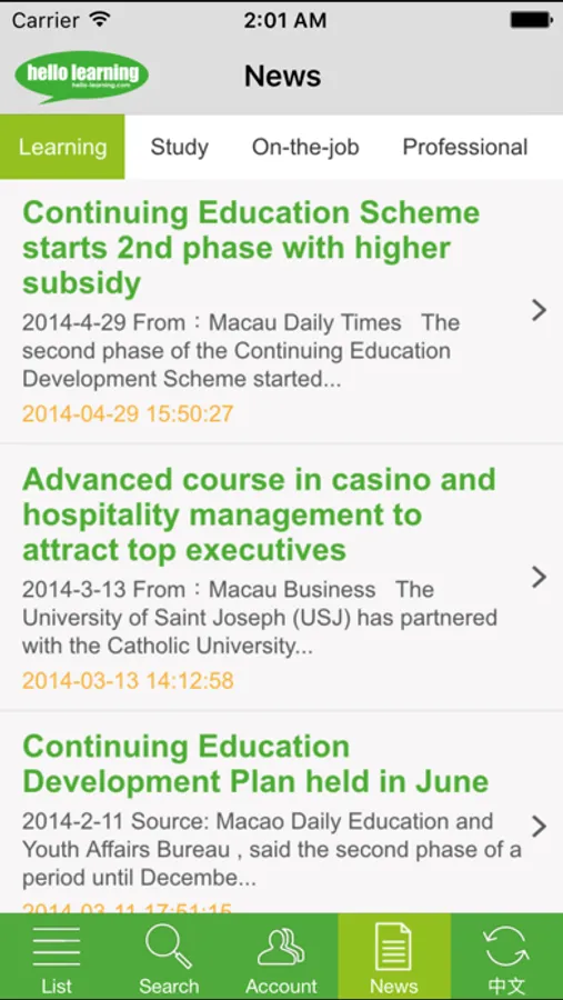This APP is information consolidation of all the continued education, short courses, seminars, after school learning, professional licenses courses, and academic courses in Macau.