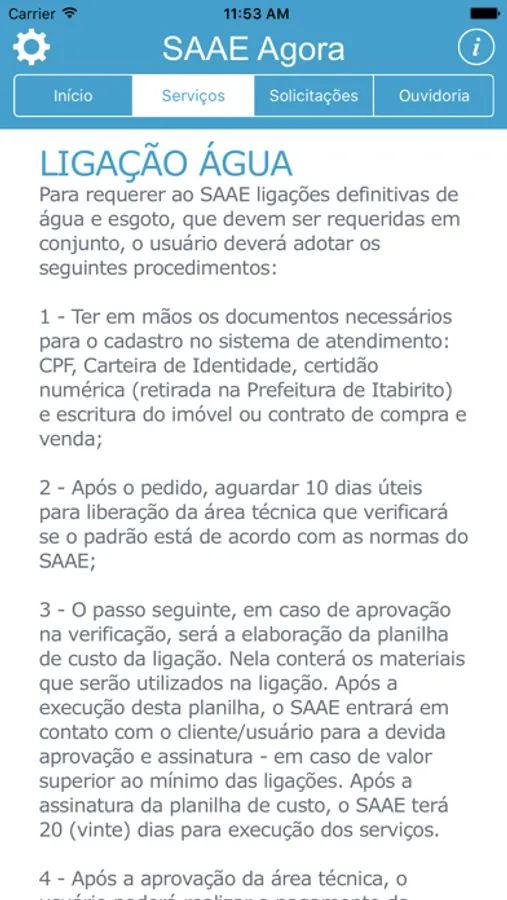 Mais uma vez, o SAAE de Itabirito sai na frente quando o assunto é o futuro da água. E põe a tecnologia de ponta a serviço da rede de abastecimento da cidade. Depois do novo Centro de Controle Operacional (CCO), vem aí o SAAE AGORA, um aplicativo para celular que permite ao usuário informar, a qualquer hora e de qualquer lugar, sobre eventuais vazamentos, interrupções e outros problemas referentes ao fornecimento de água e esgoto.