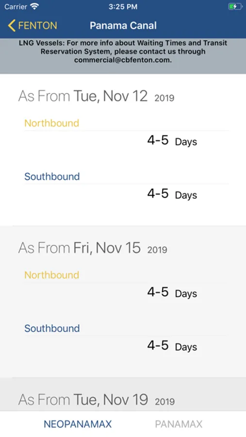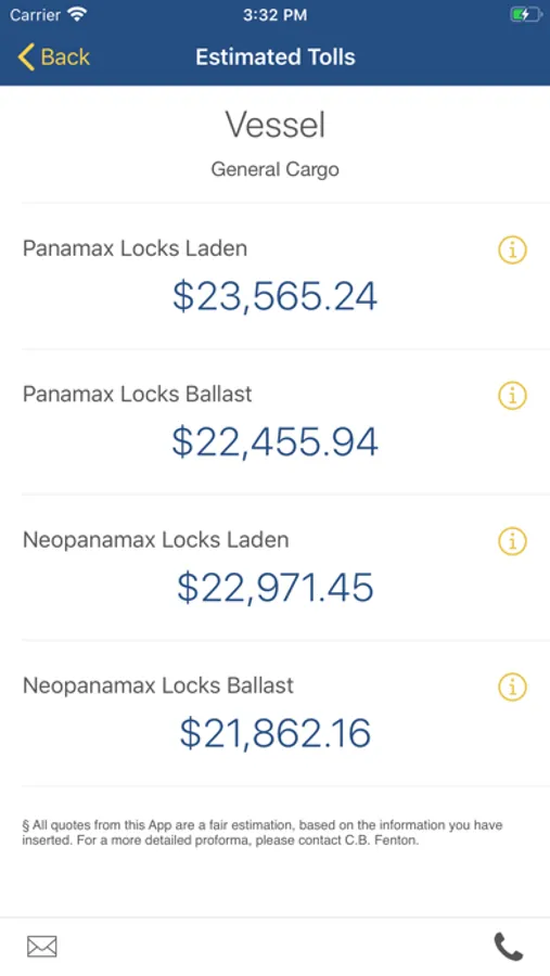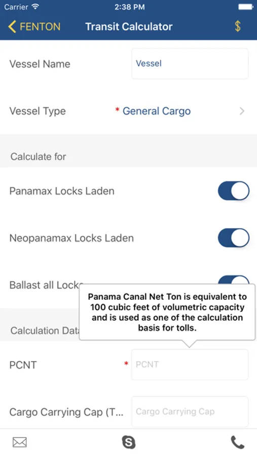 The Fenton2GO App makes the calculation of the Panama Canal transit expenses easy by providing you the following features: