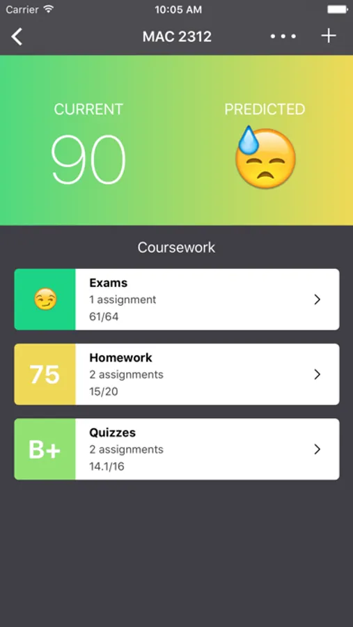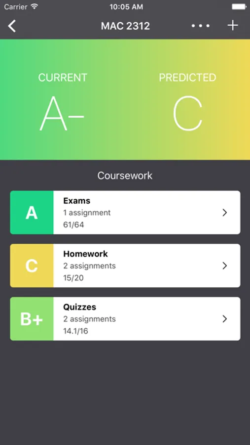 Use Gradient to record your current grades –– and predict your final grades based on assignments that you have yet to complete.