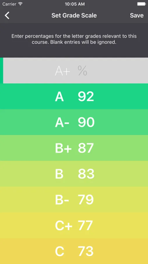 1. Set parameters for a course you want to track: things like grading scale and whether certain sections of the course are weighted differently.