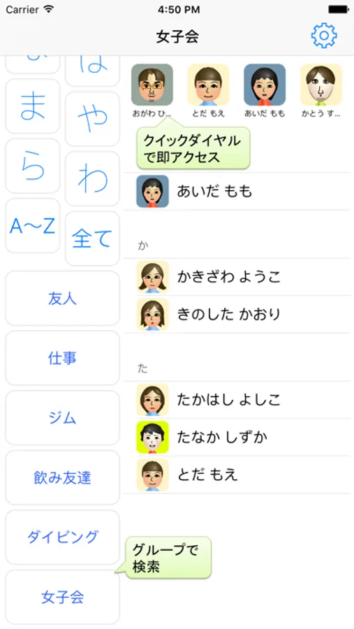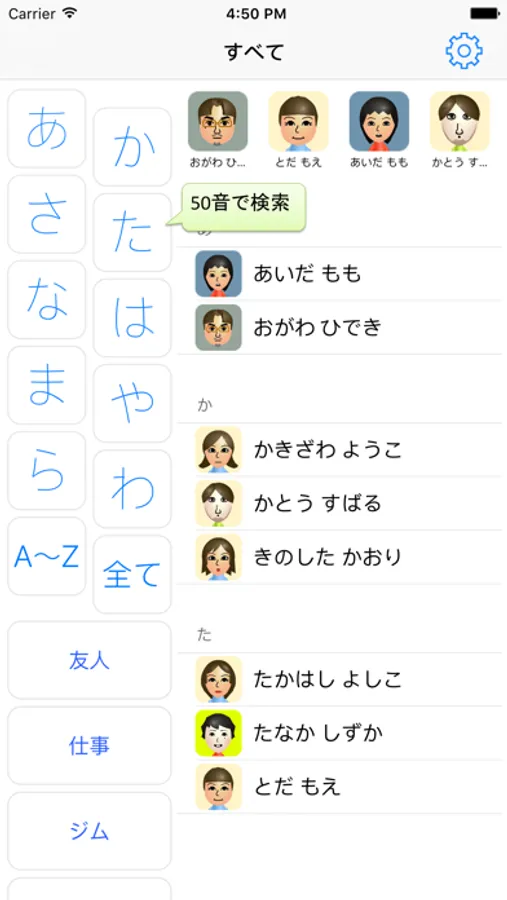 日本人が使うことを第一に考え、使い勝手を極限まで追求した、50音検索と名刺管理ができる連絡先アプリです。