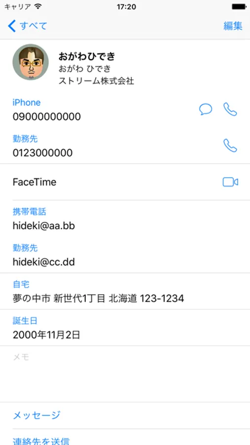 3D Touch未サポートの端末では連絡先の長押しで名刺の表示ができます。