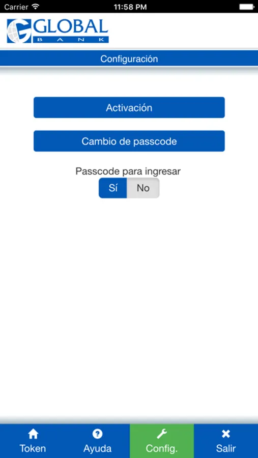 Global Token es un segundo factor de autenticación que permite generar, desde una aplicación en su equipo móvil, códigos de seguridad para confirmar la ejecución de sus transacciones en Banca por Internet.