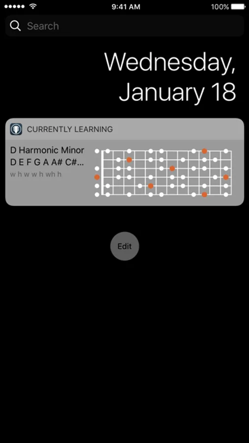 The last scale you viewed is always a few seconds away, on your Apple Watch or via the "Currently Learning" extension available in your widgets. The simplest companion out there for your music skills.