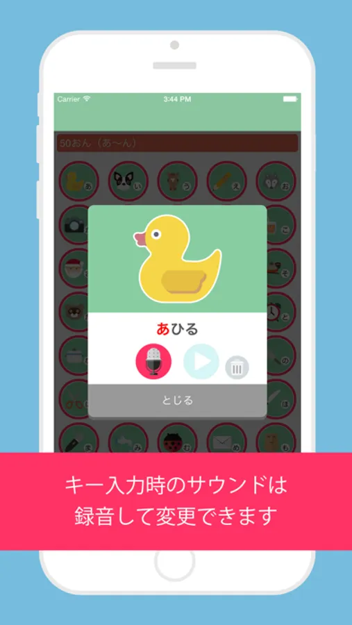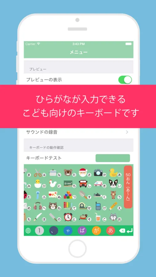 ひらがなと数字が入力できる、こども向けのキーボードです。(文字の変換機能はありません。ご注意下さい!)