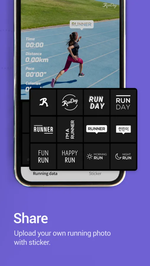 RunDay provides 30 mins running for beginners (24 days course), interval training (6 days repeat), Everyday 30 mins running (everyday repeat), Free running (users customizing running), Hiking and challenge running.