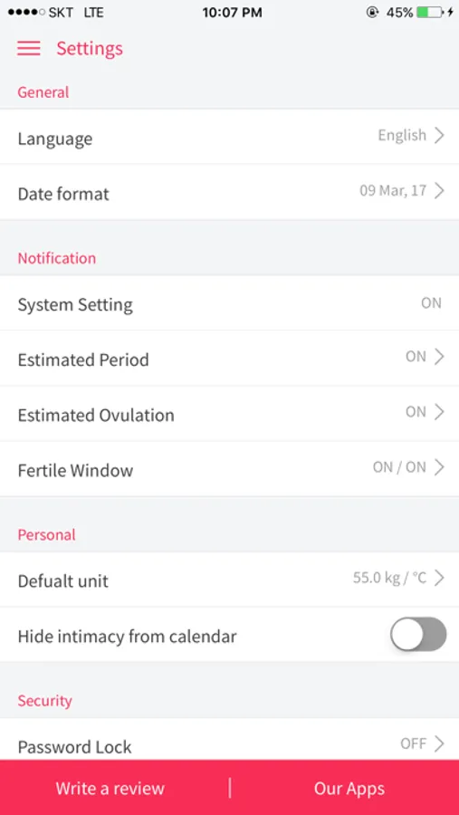 - Record the days that you got intimate with your partner (can be hidden also!)