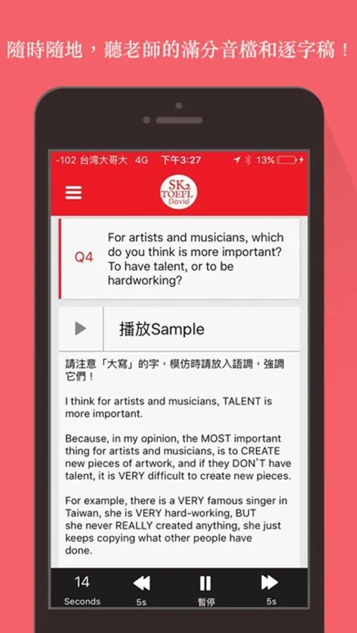 製作人:SK2 TOEFL David (TOEFL iBT 118, Speaking 30)
