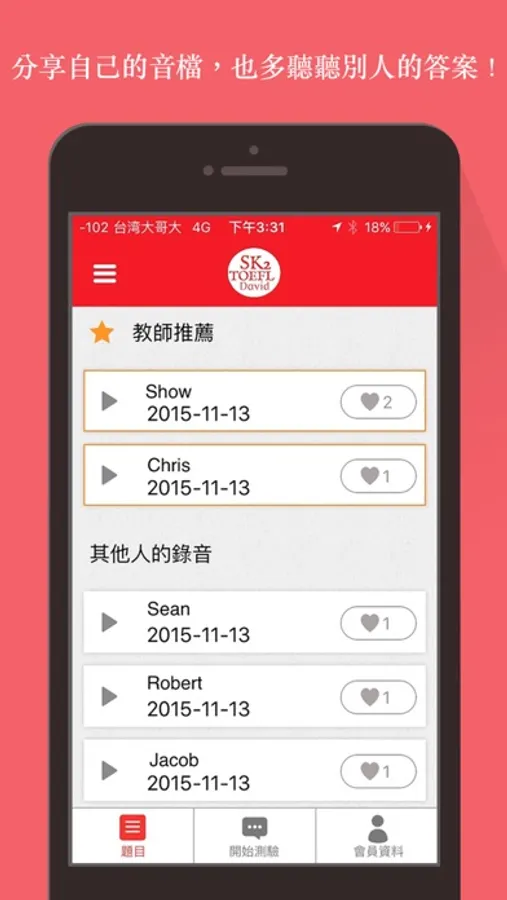錄完後,可以直接聽錄好的答案,或聽示範音檔,