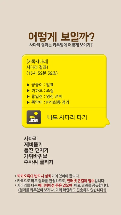 * 결과를 카톡방에 올려 모두가 함께 볼 수 있습니다.