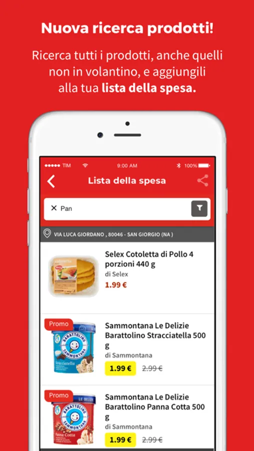 Troverai tutti i prodotti, in tutti i formati e loro varietà/tipi. Puoi condividere la lista della spesa tramite i social più diffusi (whatsapp, facebook etc)