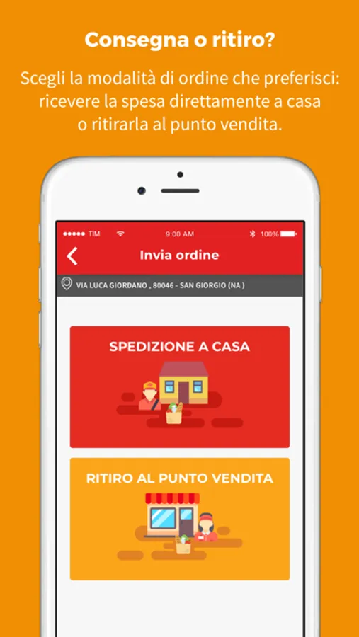 5. Scegli la modalità di consegna fra “consegna a domicilio” e “ritiro presso il punto vendita” (per i punti vendita che partecipano all’iniziativa)