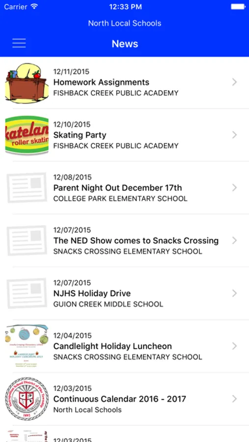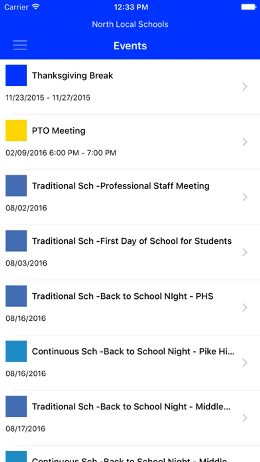 - Calendar of events: Search all of your district's upcoming events and add them to your calendar.