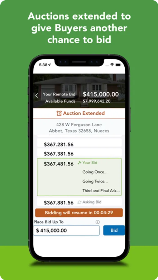 *Real-time bidding is available in select properties in AL, AR, AZ, CA, GA, ID, MO, MS, MT, NV, OR, TN, TX, and WA. Visit Auction.com/RemoteBid for details. **Status updates may be delayed in some counties.