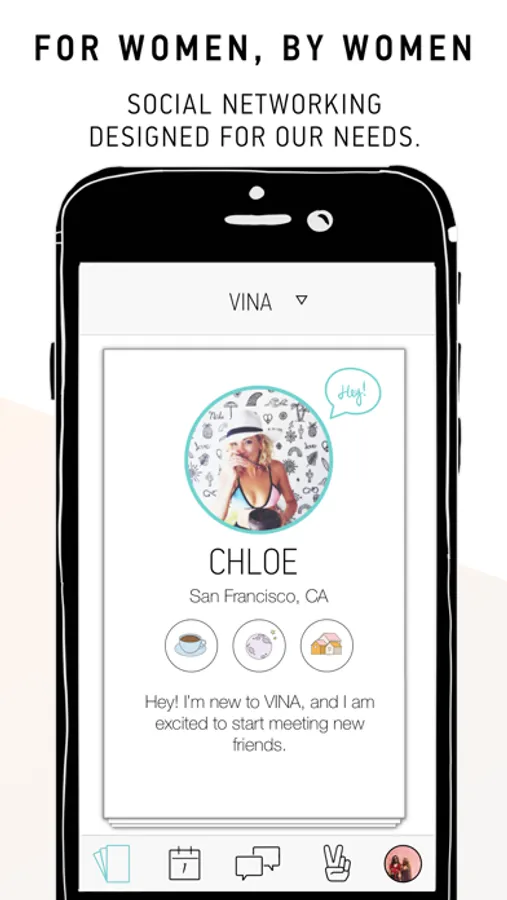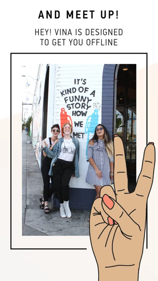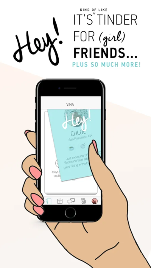 Hey! VINA is the social discovery app just for women. You can tap into wherever you are in the world (or in your life!) to meet up with friends when you travel, move to a new city, transition life phases, or simply want to grow your social circle. Friend finding made safe, easy, and fun. Yay!