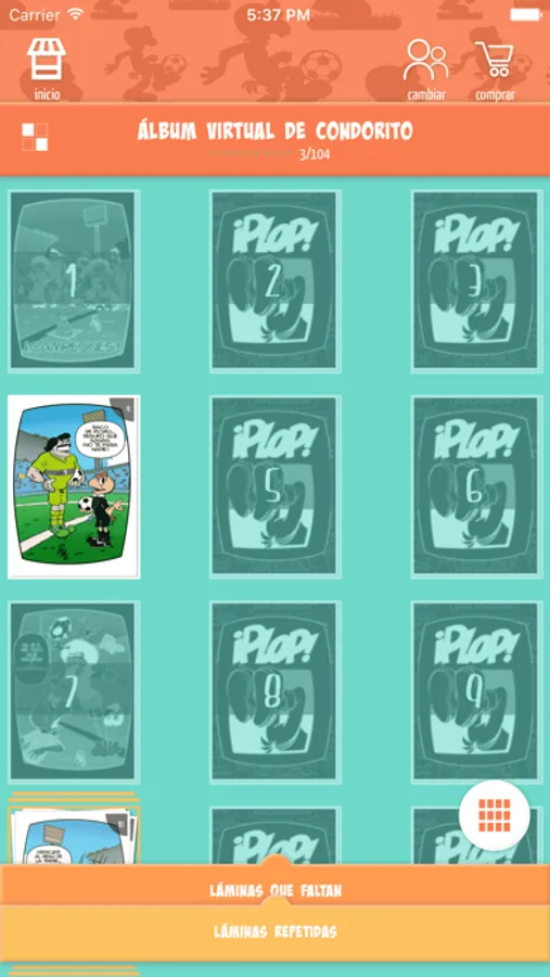 Diviértete coleccionando el álbum de Condorito! Disfruta de láminas a todo color que retratan las más entretenidas condoricosas futboleras y al club deportivo que lidera el pajarraco en Pelotillehue. Además, tendrás posibilidad de cambiar láminas repetidas y conseguir nuevas imágenes. Comparte en facebook y conviértete en el primero que junte el álbum de tus amigos!