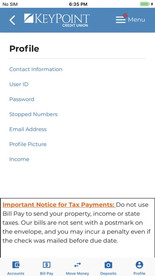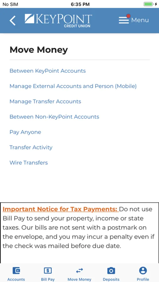 * Easy transfers to other Members or between your accounts at KeyPoint or other Financial Institution