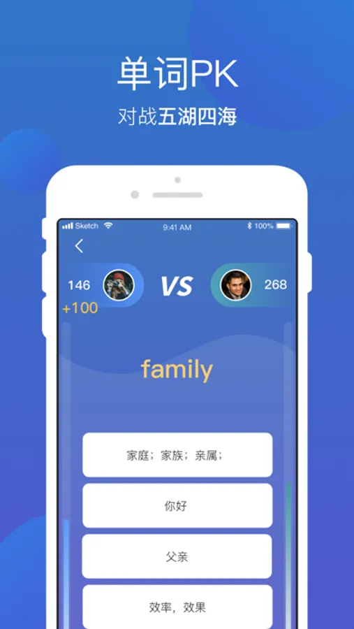 智能匹配PK对手,对战80秒,就知道单词记没记牢。
