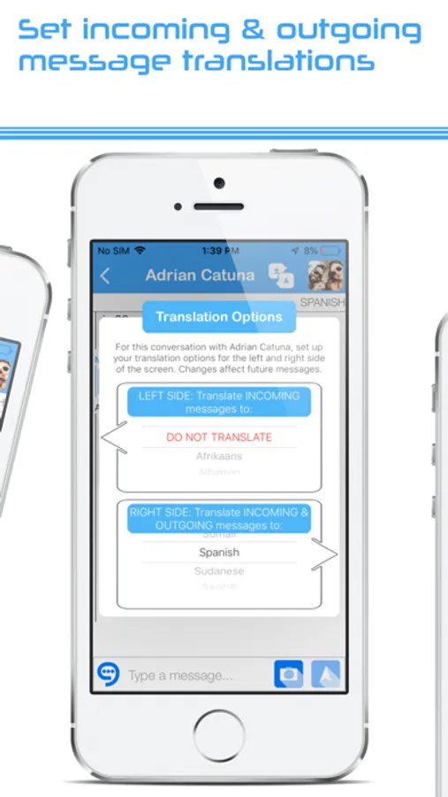 Chat with those that speak a different language, by seeing their incoming messages translated into your language.