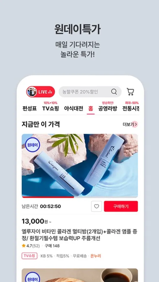 - 모바일 라이브 방송에서 실시간으로 소통하며 좋은 상품을 득템하세요!