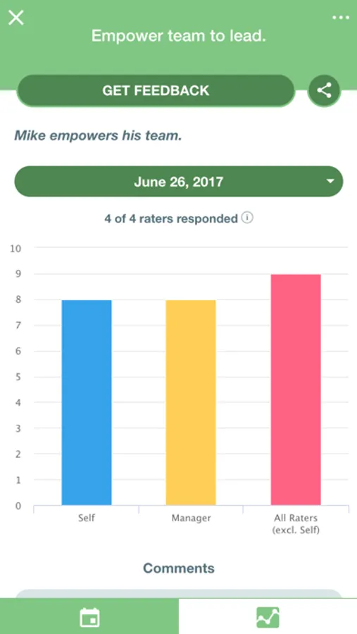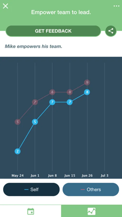 This app allows an executive receiving executive coaching to easily collect feedback from raters with a touch of a button, and automatically charts their progress against development goals over time. The app also provide the coaching client with regular behavioral reminders tied to his/her specific coaching goals to support positive change.