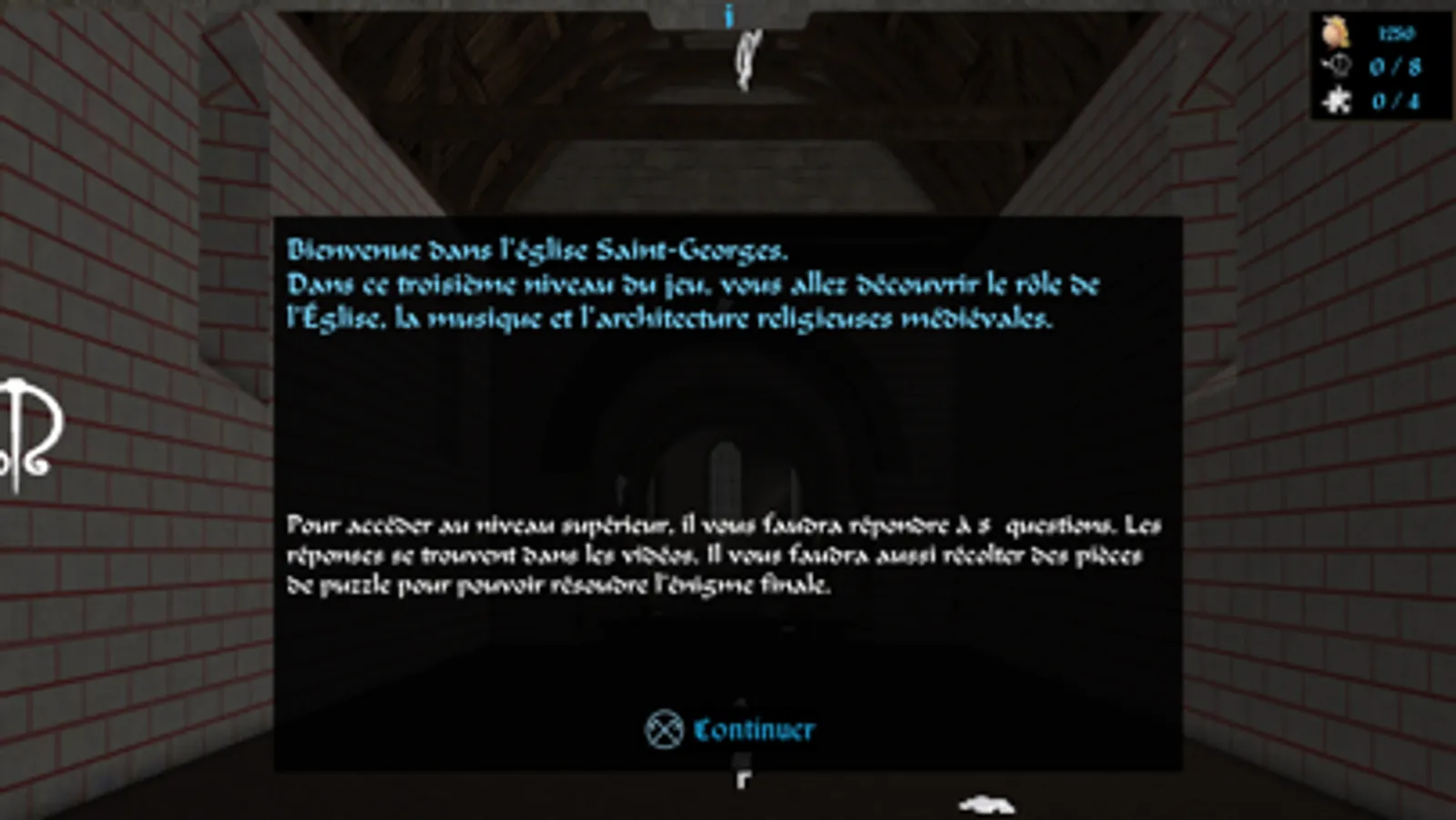 L’utilisateur devra répondre à des quiz, récupérer des pièces de puzzles et les remettre en place pour accéder au niveau supérieur. Il évoluera ainsi dans cinq niveaux pour atteindre le trésor caché dans le donjon du château.