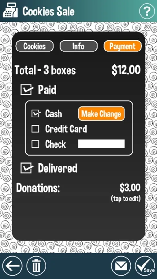 --Use a digital cookie sheet to track customer orders, contact info, donations, payments and cookie delivery status.