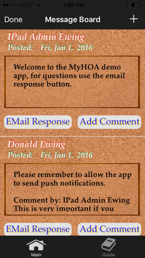 Welcome to the My Association Custom iPhone® Mobile Application! The My HOA iPhone Mobile App is designed to enable private communication between you and other members and the HOA, quick access to information about HOA events, and the ability to receive text messages regarding current issues for the HOA. You can send pre-formatted emails to the HOA to ask questions and RSVP for events. Through the Association directory you can communication with other Association Members. This is a password protected App.
