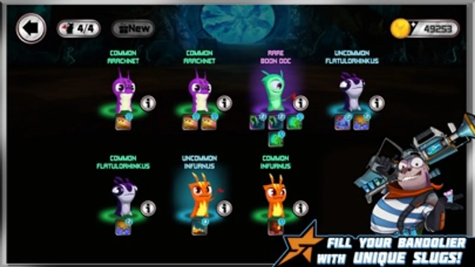 Strategy is more important than ever in the physics-based battle arenas. Drag and fling your team members into position—use obstacles for cover, but watch for hazards! Then carefully choose a powerful slug attack to blast at your foes. Combine slug powers for awesome combo moves!
