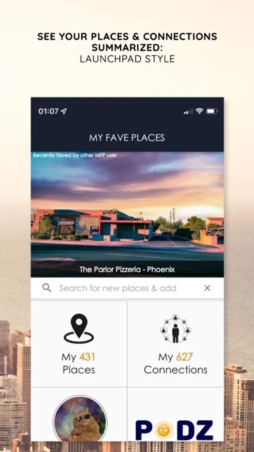 Follow @myfaveplaces on social media (FB, TW, IG, Pin, LI) and @p.o.d.z on IG. Download now and unlock a world of possibilities with My Fave Places + Podz - the ultimate app duo for discovery, connection, and inspiration!