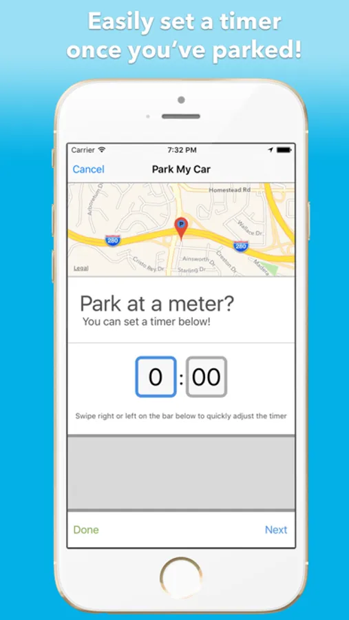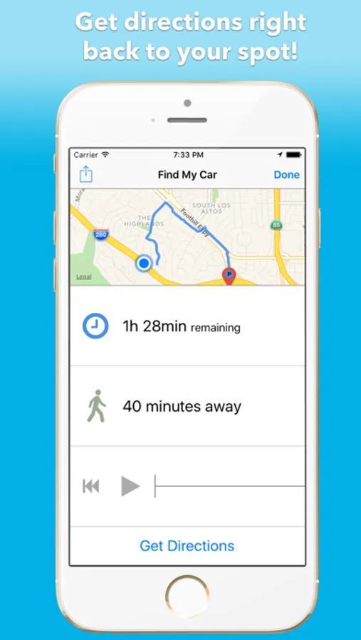 *Share where you parked: Use Twitter, Facebook, or Messages straight from iOS to share where your parked and let your friends know where you are and the cool spots you've been visiting.