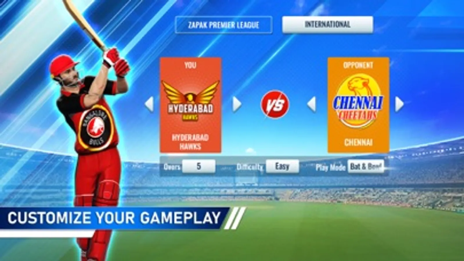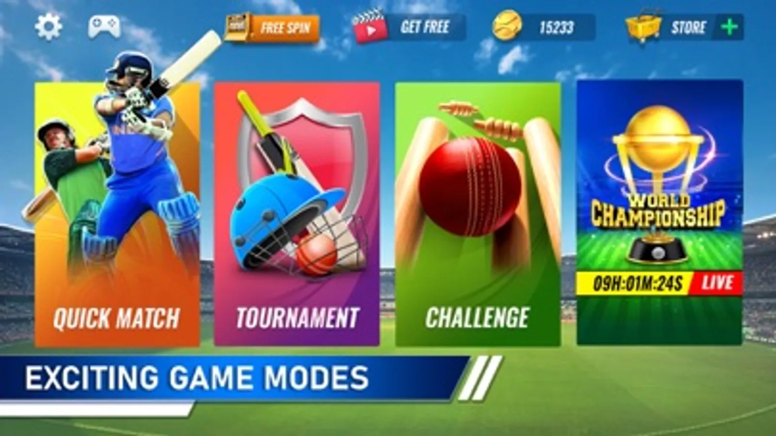 Live your cricket Dream in QUICK MATCH and TOURNAMENT modes.