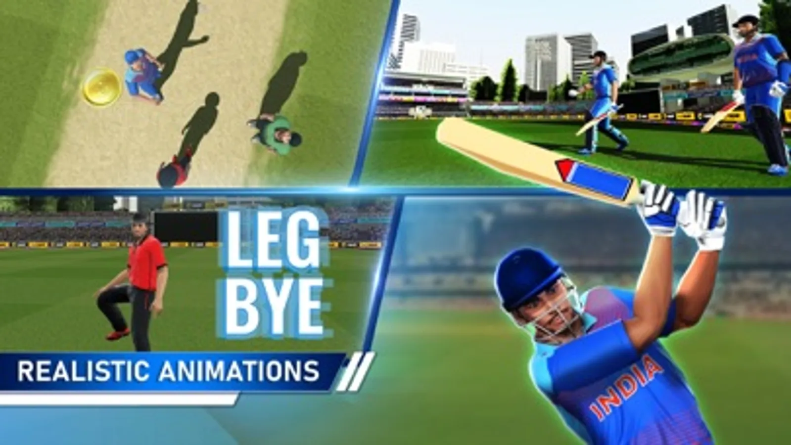 • Full 3D graphics, realistic animations batsman motion, and ball physics