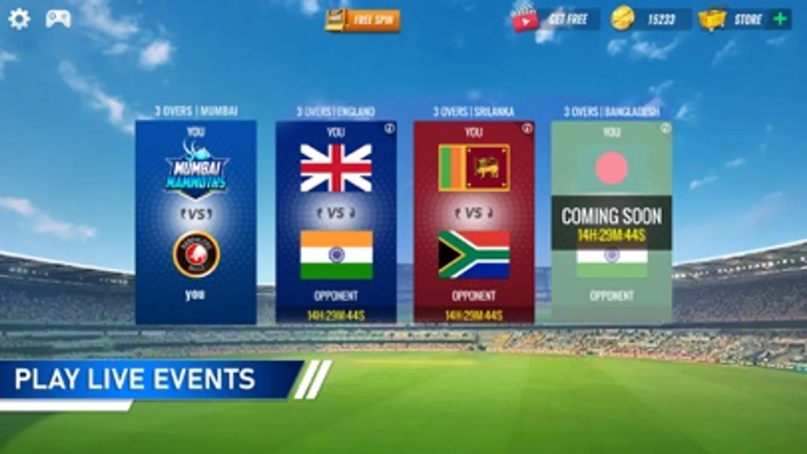 Participate in the New Live Events mode and play in sync with real-world cricket showdowns like India vs New Zealand, Pakistan vs Bangladesh, Australia vs England, Sri Lanka vs West Indies, Afghanistan vs Netherland, Nepal vs Bangladesh etc. Set your own match fate and win fabulous rewards.
