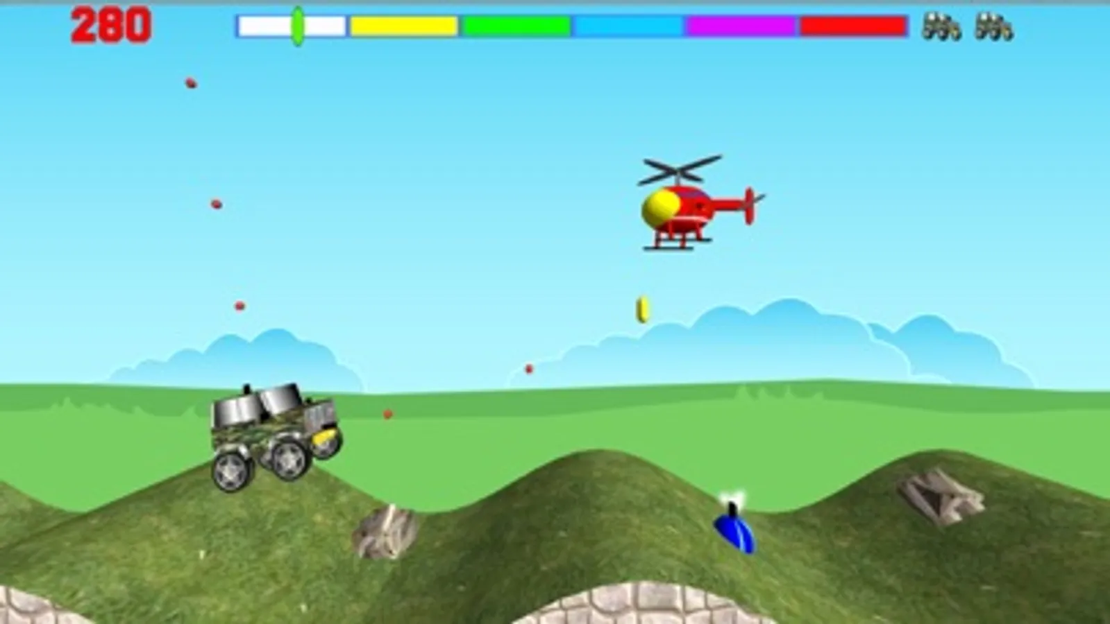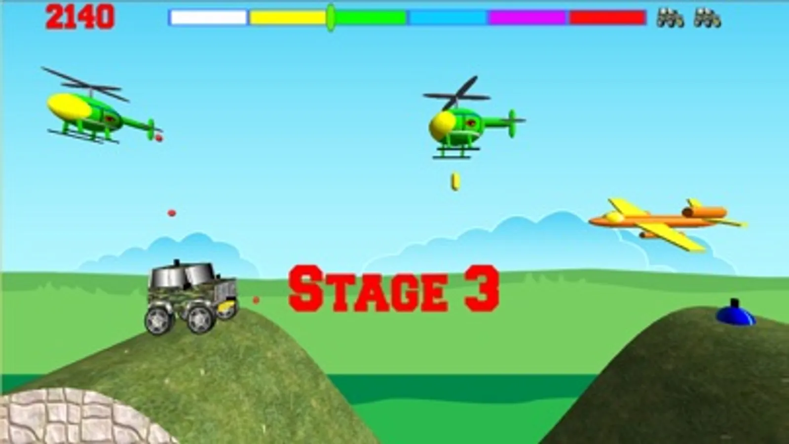 Enemy choppers will try to destroy your truck, luckily you are equipped with front and top cannons so you have ample fire power to defend your pick up truck.