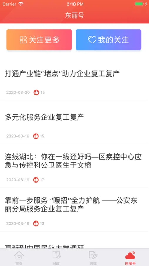 “东丽号”版块,与区内的微信公众号资源做到接口数据对接,全天候提供各种资讯。