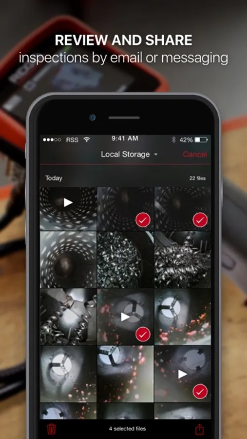 RIDGID View works exclusively with RIDGID’s micro CA-330 inspection camera. Once connected to the CA-330’s Wi-Fi hotspot, RIDGID View will provide a live “second-screen” display of the inspection. It can record video, capture images and review existing media on the CA-330 inspection camera. RIDGID View also allows quick sharing of pictures and video with others by email or messaging.