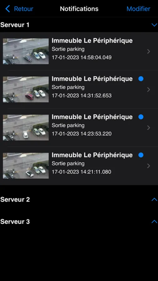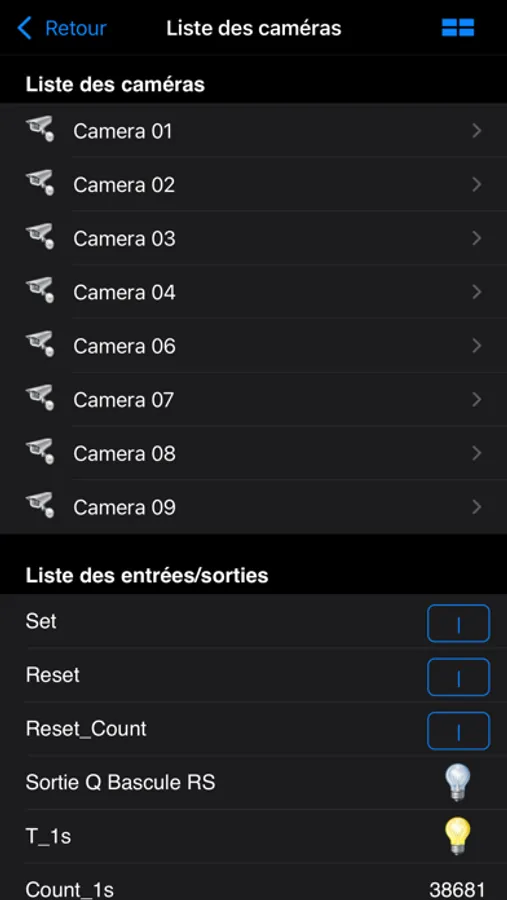 - Gestion des entrées/sorties depuis l'écran "Liste des caméras".