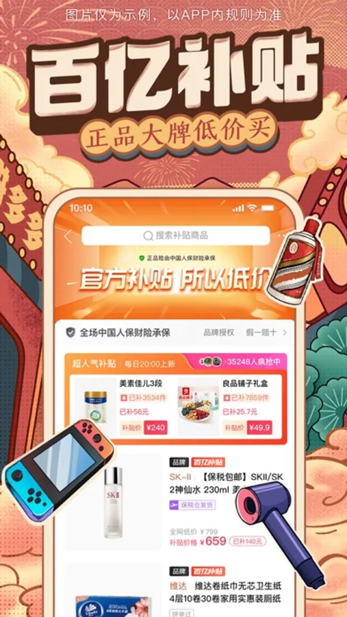 2、百亿补贴:精选补贴全网热销品牌商品,直接降价,购物不必做算术题。