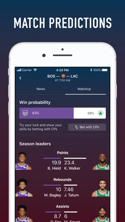ClutchPoints is the fastest and most innovative sports app in the market. Each game's social stream is the new way to follow live sports on-the-go, even if you're away from the TV.