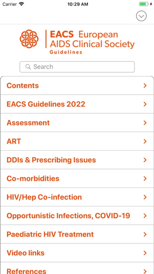 The EACS Guidelines provide guidance for healthcare professionals on: assessment of HIV-positive persons, antiretroviral therapy (ART), prevention and management of co-morbidities, co-infections and opportunistic infections. EACS App features include full text search, user-created bookmarks and notes, drug-drug interactions tables and more.