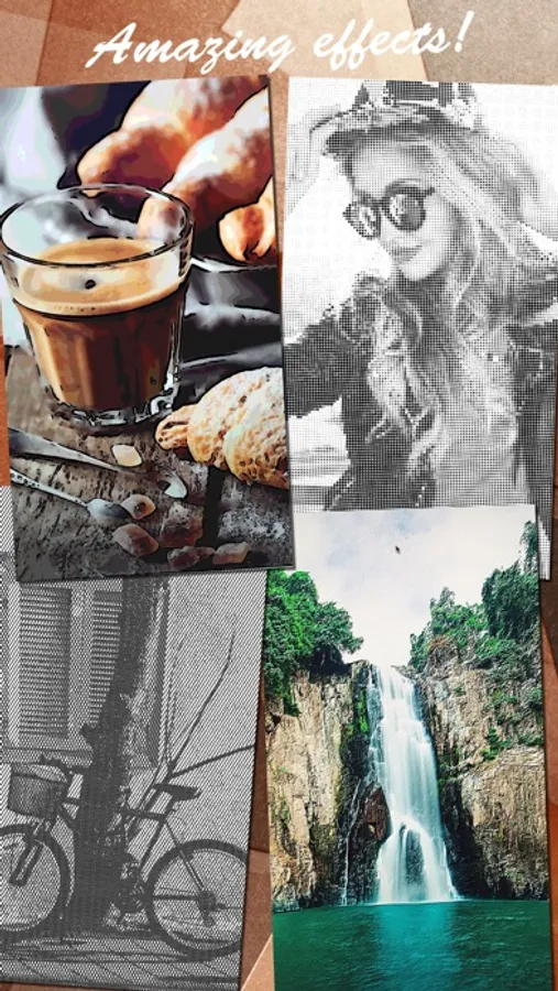 → 8 amazing effects/filters: Sketch, Cartoon, Dots, Halftone, Crosshatch, Swirl, Pixellate and Emboss