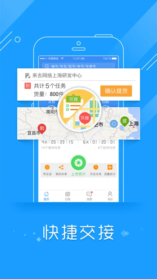 「物流控足迹版」通过创新的流程驱动机制和畅通的信息交互渠道在司机和发货方、收货方、物流公司之间搭建了一座方便快捷的桥梁,让以往繁琐的货物跟踪变得更轻松、更便捷、更省心。