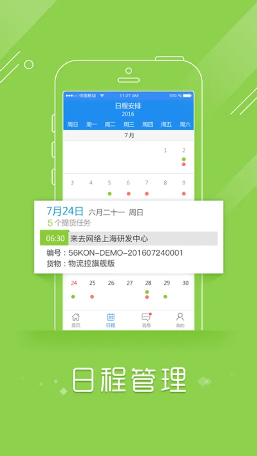「物流控足迹版」是一款基于物流控平台(http://www.56kon.com)的司机工具类应用,集货物交接、任务定检、拍照上传、行车定位、在途货跟等功能于一体。